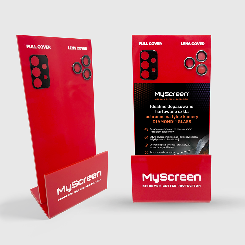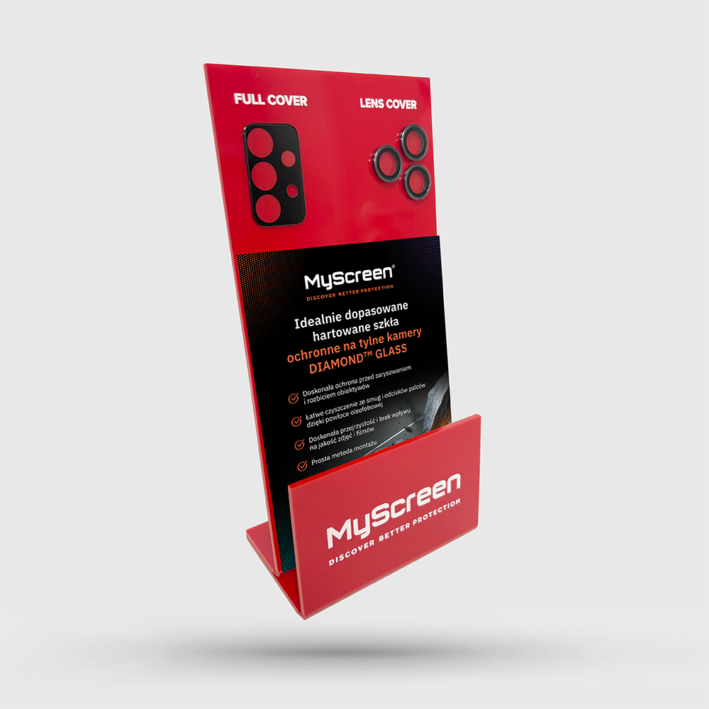 Leaflet stand-camera/red/DL/Lens – stand without leaflet