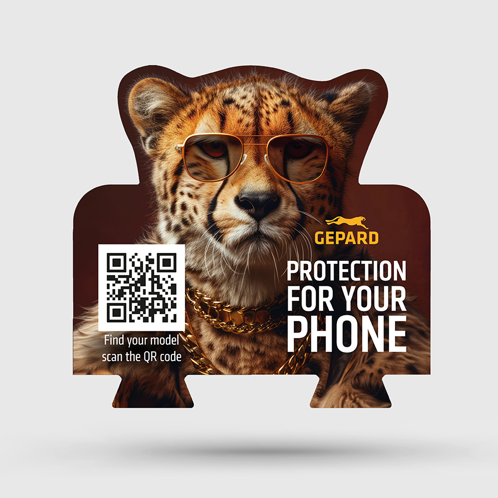 Cheetah topper for stand in two different languages